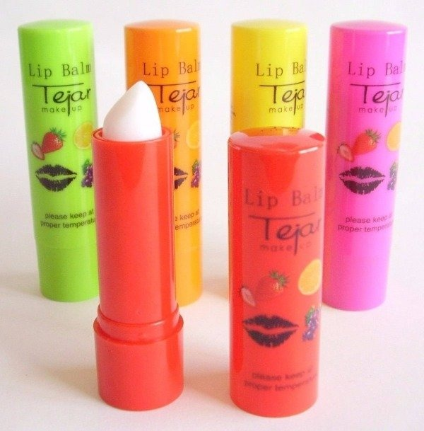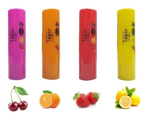 (Bálsamo Labial marca "Tejar" Caja x 24U.variedad en 4 tonos y sabores naranja, frutilla, cereza y limón. Los bálsamos de labios hidratan la piel y previenen la pérdida de agua. Actúan como una pre-base: preparan los labios antes de aplicarles el color y potencian al máximo los beneficios de las barras de labios).
