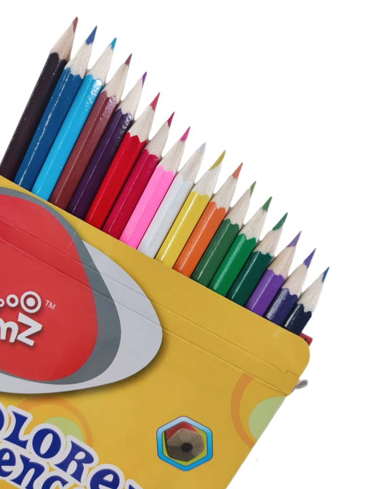 (Lápices de colores "Mba color" por 18 unidades . Este blister contiene los siguientes colores: , Negro , azul, violeta, lila , verde oscuro, verde claro, verde manzana , naranja , amarillo, blanco, rosa , cereza, rojo, purpura , marrón , celeste , azul claro. Sus minas son resistentes, fáciles de afilar y no se astillan, tienen una forma triangular en su punta. Su caja es de color roja. Ideal para el regreso a clases. Categorizado: Librería)