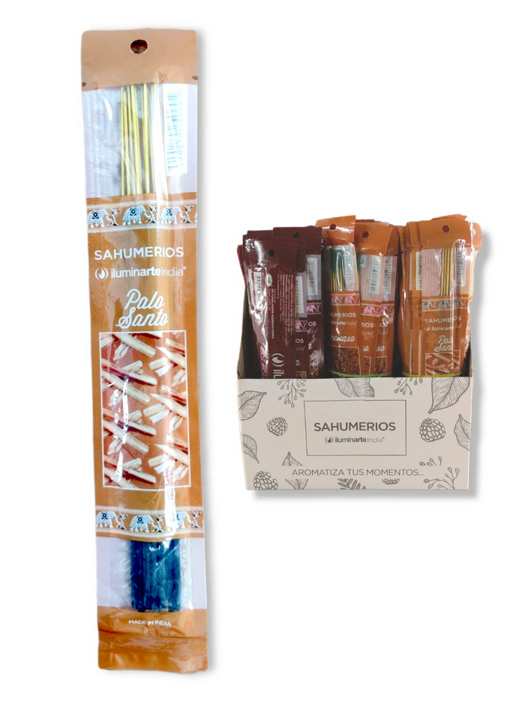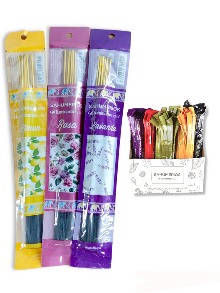 (Sahumerio iluminarte, aromatizador para ambientes, hogar, habitaciones. Cada paquete contiene 10 varillas. Variedad de aromas: palo santo, sándalo, vainilla, champa, mirra, incienso, jazmin, reina de la noche, frutilla, rosa, lavanda, limón. Se vende por unidad y por pack de 24 unidades. Categorizado en hogar).