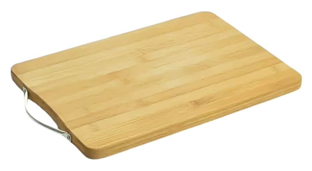 (Tabla de picar o cortar "Cristal Rock" super, rectangular 1.5 cm de grosor con su manija de metal ,esta está pensada para poder colgar, transportar o ideal para la preparación de tus alimentos. Lista para su uso, curada con productos 100% naturales sin químicos, anti hongo, de madera maciza y de escasa absorción. Puede emplearse de ambos lados por su tratamiento y es muy resistente al uso frecuente. Material: bamboo. Categorizado: bazar)