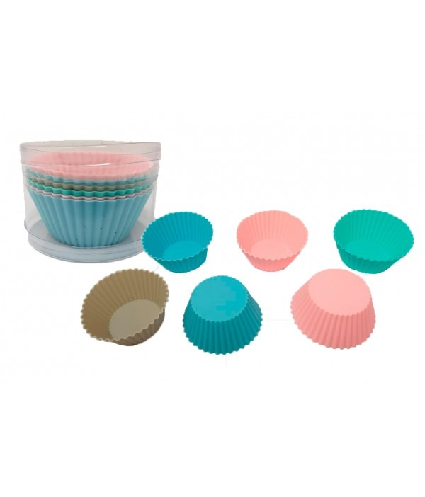 (Moldes para muffin de silicona. Surtidos en colores rosa pastel, verde agua, celeste y gris. Ideal para preparar esos bocaditos para después de tus comidas y/o cumpleaños. Estos vienen envasado en una pequeña caja de plástico transparente para proteger de rotura, perdidas o suciedad. Gracias a su material se hace mas fácil a la hora de desmoldar. Contenido de 6 unidades. Reutilizable. Categorizado: todo para repostería)