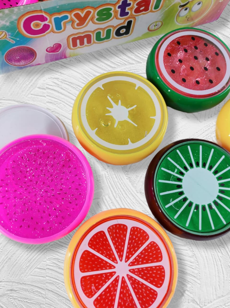 (Slime de frutas. Este tiene una textura gelatinosa lo cual permite hacer formas, estirarlo y manipularlo de la manera que mas guste. Envasando en un frasco transparente de plastico con tapa a presión. Pensado para la diversión de lo mas pequeños. Disponibles en 6 opciones: sandia- frutilla- naranja- limón- pepino- limón . Venta por unidad o por caja las cuales contienen 18 unidades surtidas. Categorizado: juguetería)